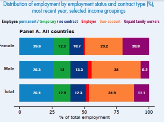 “Les structures de l’emploi ont changé considérablement depuis la dernière décennie. Le plein-emploi, les contrats de travail stable représentent moins d’un emploi sur quatre, et les données statistiques ne s’améliorent pas sensiblement. […] En outre, la montée de l’emploi informel, les formes de travail non déclaré et temporaire, ainsi que le travail à temps partiel involontaire, ont contribué à l’accroissement de l’inégalité des revenus constaté dans la majorité des pays durant les deux dernières décennies.”, Guy Ryder, Directeur général de l’OIT.