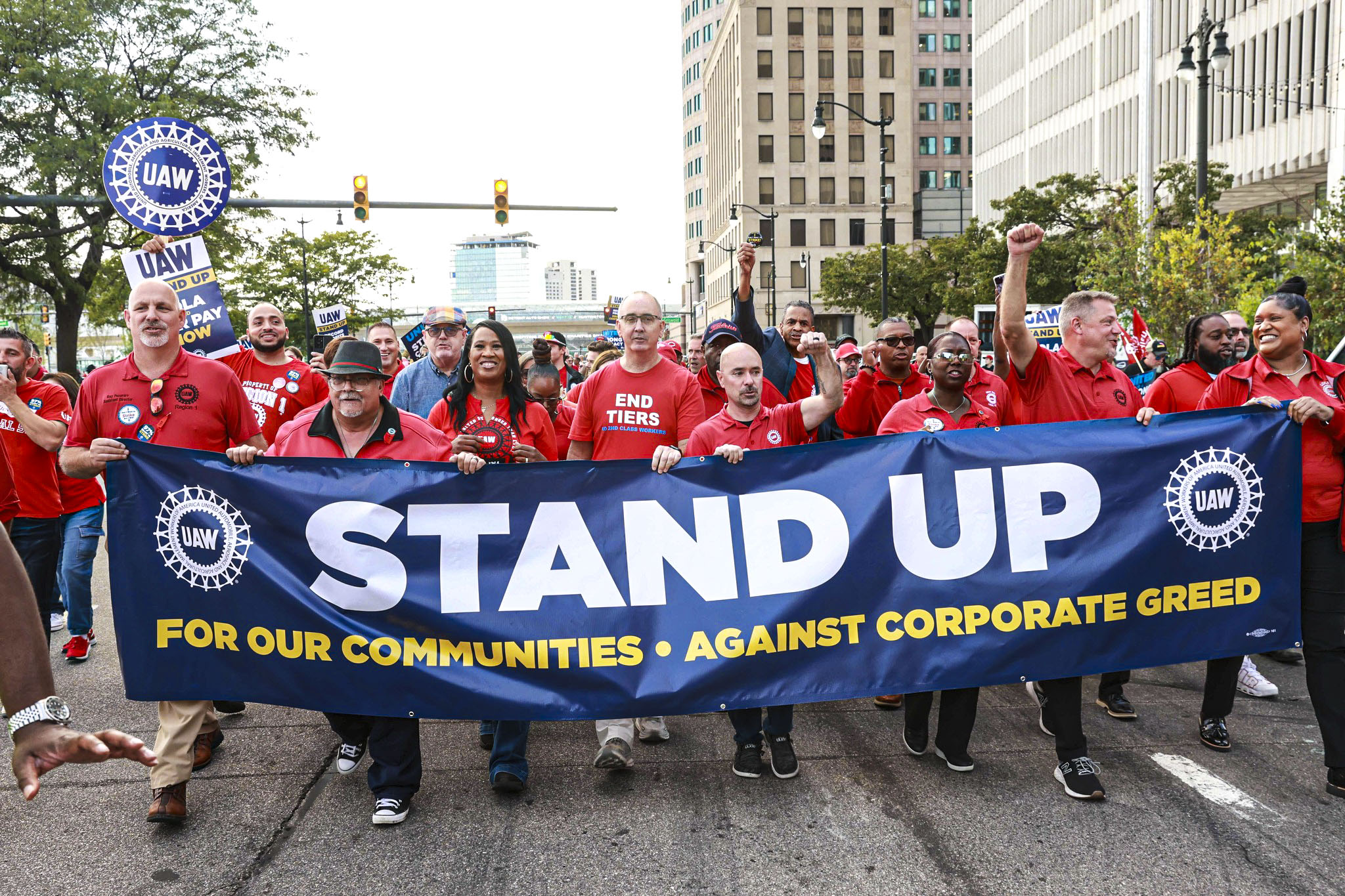 D’autres travailleurs attendent d’être appelés à participer à la “Stand Up Strike”, une nouvelle approche de la grève. Au lieu de faire grève dans toutes les usines en même temps, certaines sections locales ont d’abord été appelées à se mobiliser et à faire grève. Si les constructeurs automobiles ne progressent pas dans les négociations et ne négocient pas de bonne foi, d’autres sections locales seront alors appelées à se joindre à la grève. Le syndicat réclame un niveau de vie décent, des salaires qui augmentent en vertu de l’inflation, une retraite digne, la protection des travailleurs et la lutte contre les fermetures d’usines.