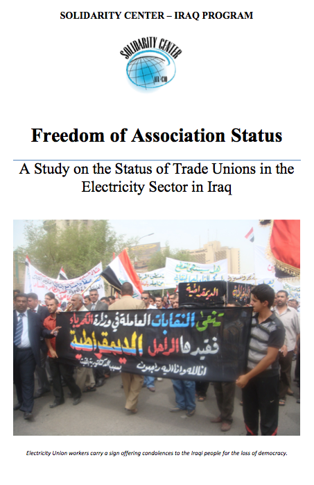 Par le biais d’interviews et de questionnaires portant sur un échantillon de travailleurs et syndicalistes du secteur de l’électricité, l’étude du Solidarity Center reprend l’histoire de l’évolution du mouvement syndical en Irak avant et après la chute du régime de Saddam Hussein. Ses conclusions sont que, bien que la législation n’a pas évolué, à la fois les syndicats nouveaux et pré-existants ont connu une croissance significative depuis 2003.