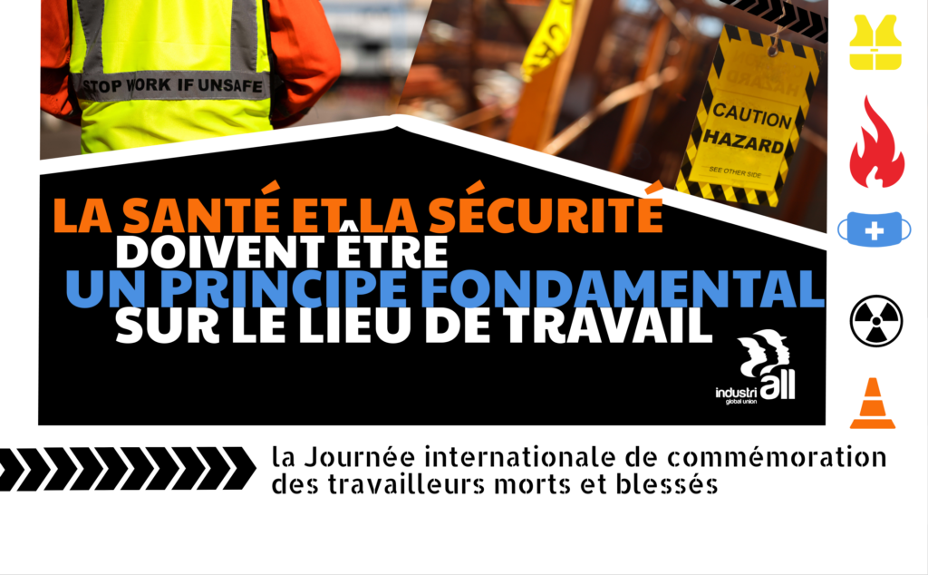 28 mars, 2024À l’approche de la Journée internationale de commémoration des travailleurs morts et blessés, le 28 avril, IndustriALL met l’accent sur la santé et la sécurité sur le lieu de travail. Chaque année, plus de 3 millions de travailleurs et travailleuses meurent à cause de leur travail et des dizaines de millions d’autres sont blessés. La santé et la sécurité au travail ne sont ni un avantage à négocier ni une faveur à demander. Il s’agit de notre droit.