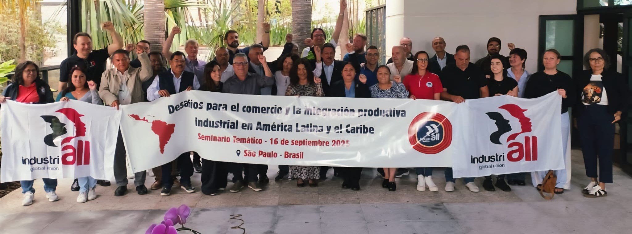 23 septembre, 2025Le 16 septembre dernier, à São Paulo, au Brésil, IndustriALL a réuni des experts et ses affiliés d’Amérique latine et des Caraïbes afin de débattre des stratégies à adopter pour relever les défis liés au commerce, à la production et à l’intégration industrielle dans la région, dans un contexte marqué par les inquiétudes quant à l’impact des incertitudes au plan mondial sur l’emploi, la liberté syndicale et les droits humains.