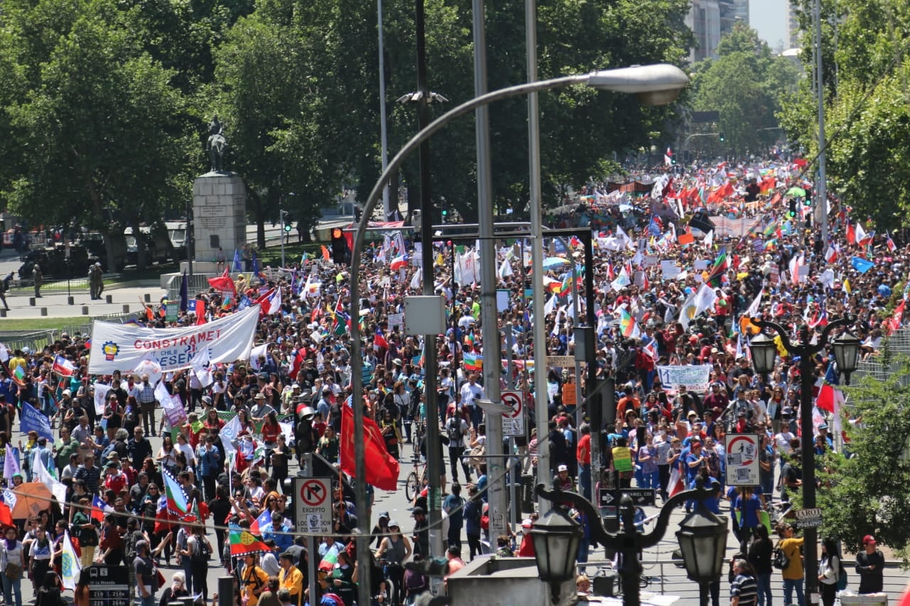 Un nombre incroyable de personnes ont manifesté dans les rues de #Santiago et du #Chili dans le cadre du #ChileProtests! #FightInequality: les Chiliens qui connaissent des niveaux records d'inégalité en ont assez #ChileQuiereCambios #NoEstamosEnGuerra #LaMarchaMasGrandeDeChilepic.twitter.com/pFuB6w2UNk