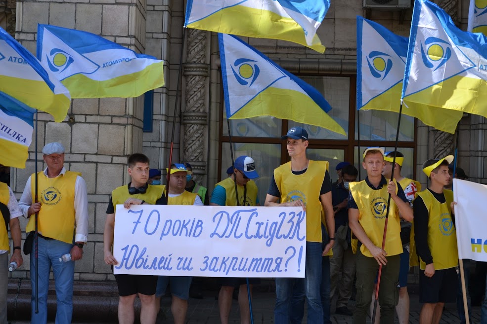 Le 7 juillet, le Syndicat des travailleurs de l'énergie et l'industrie nucléaires d'Ukraine Atomprofspilka a organisé un piquet de grève devant le ministère de l'Énergie, à Kiev, afin de réclamer des solutions immédiates pour garantir le fonctionnement dans le temps, la maintenance et le développement de l'usine, et pour préserver les emplois de ses 8.000 travailleurs.