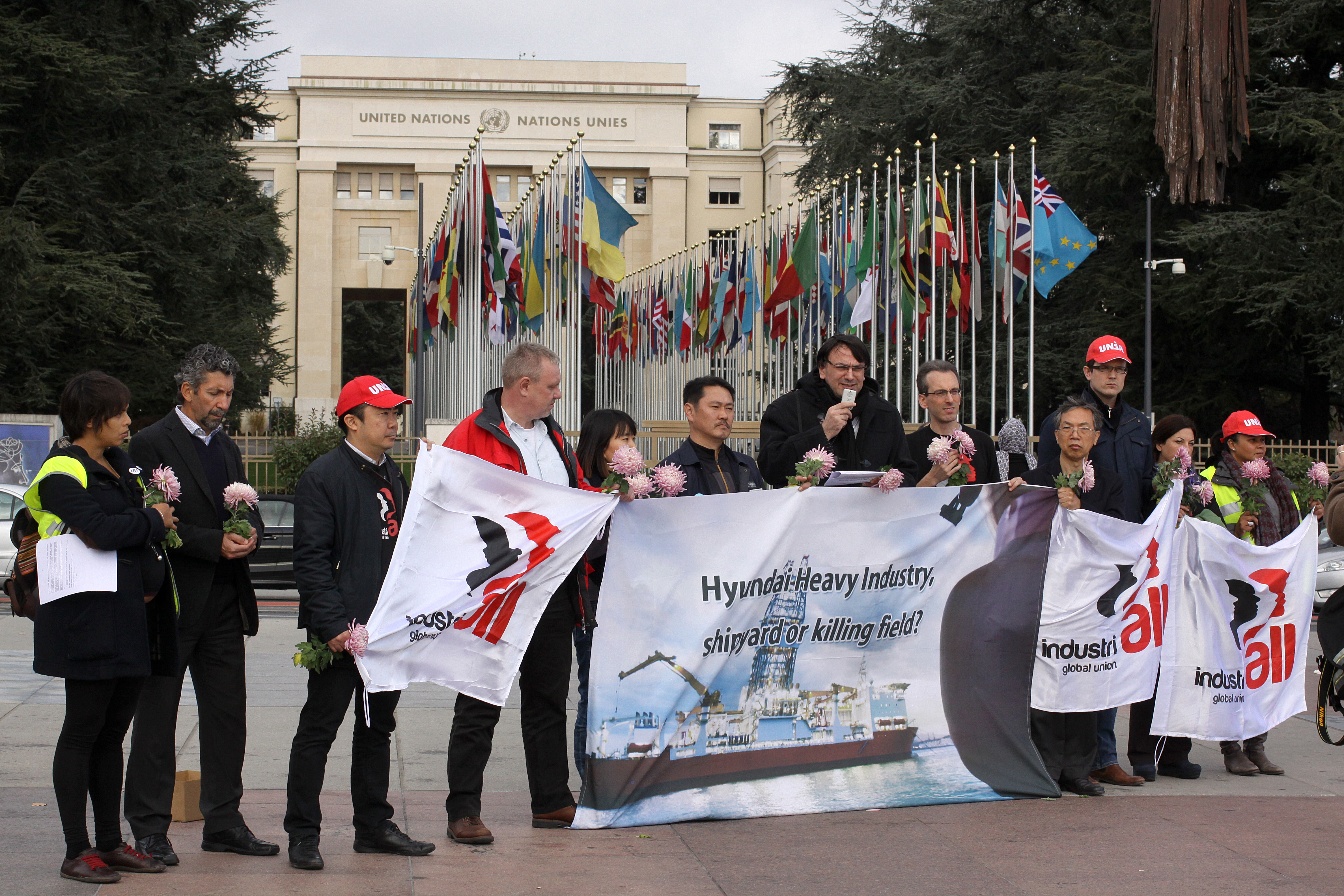 18 novembre, 2015Des syndicalistes venus de Corée ont parcouru 9.000 kilomètres pour se rendre à Genève en Suisse et participer cette semaine au Forum des Nations Unis sur les Entreprises et les Droits de l’Homme. Ils veulent faire savoir au monde entier que des travailleurs meurent sur les chantiers navals du plus grand constructeur de navires de la planète, Hyundai Heavy Industries (HHI).