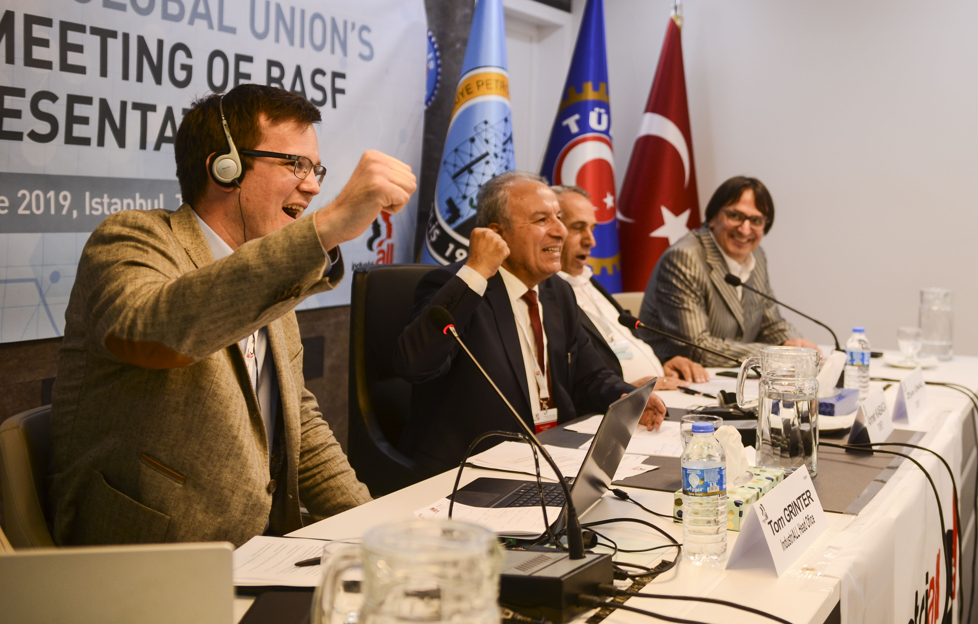 La réunion a été déclarée ouverte par le secrétaire général de Petrol-İş, Ahmet Kabaca, et le vice-président général de Lastik-İş, Ziya Ünal. Les deux syndicats représentent vigoureusement les travailleurs de BASF en Turquie mais, comme l'a fait remarquer Ziya Ünal, le code du travail turc les empêche de coopérer pour organiser les mêmes lieux de travail.