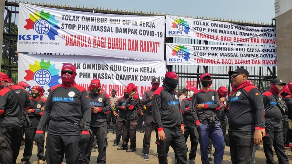 Le projet de loi controversé est un point central de l’action du mouvement syndical indonésien. Le 3 août, des milliers de travailleurs ont manifesté à l’initiative de la Confédération des syndicats indonésiens (KSPI) devant le parlement indonésien et le ministère de coordination des affaires économiques pour protester contre le projet de loi Omnibus.