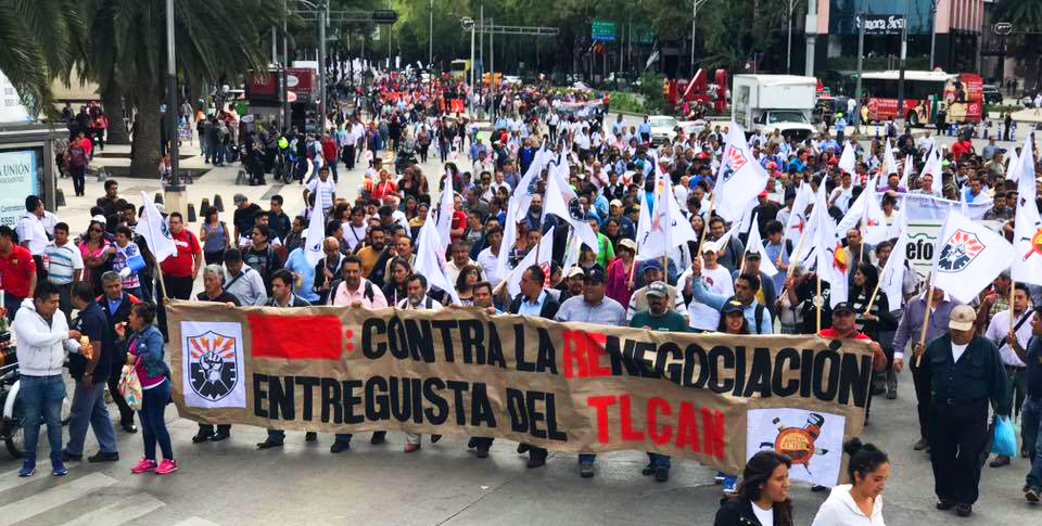 Le défilé était planifié pour coïncider avec le premier cycle de négociations qui se tient à Washington pour moderniser l'Accord de libre-échange nord-américain (ALENA) qui lie le Canada, les États-Unis et le Mexique. La mobilisation de Mexico a débuté quelques heures après l'ouverture des négociations aux États-Unis.
