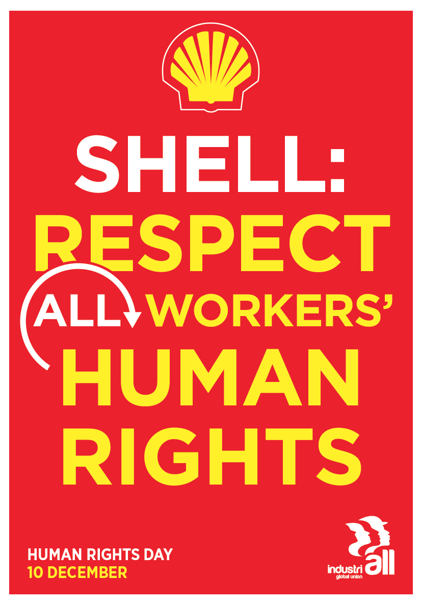 Le 10 décembre est consacré internationalement comme Journée des Droits humains et les syndicats exigent que Shell cesse de violer les droits humains dans l’ensemble des 70 pays où l’entreprise développe ses activités.