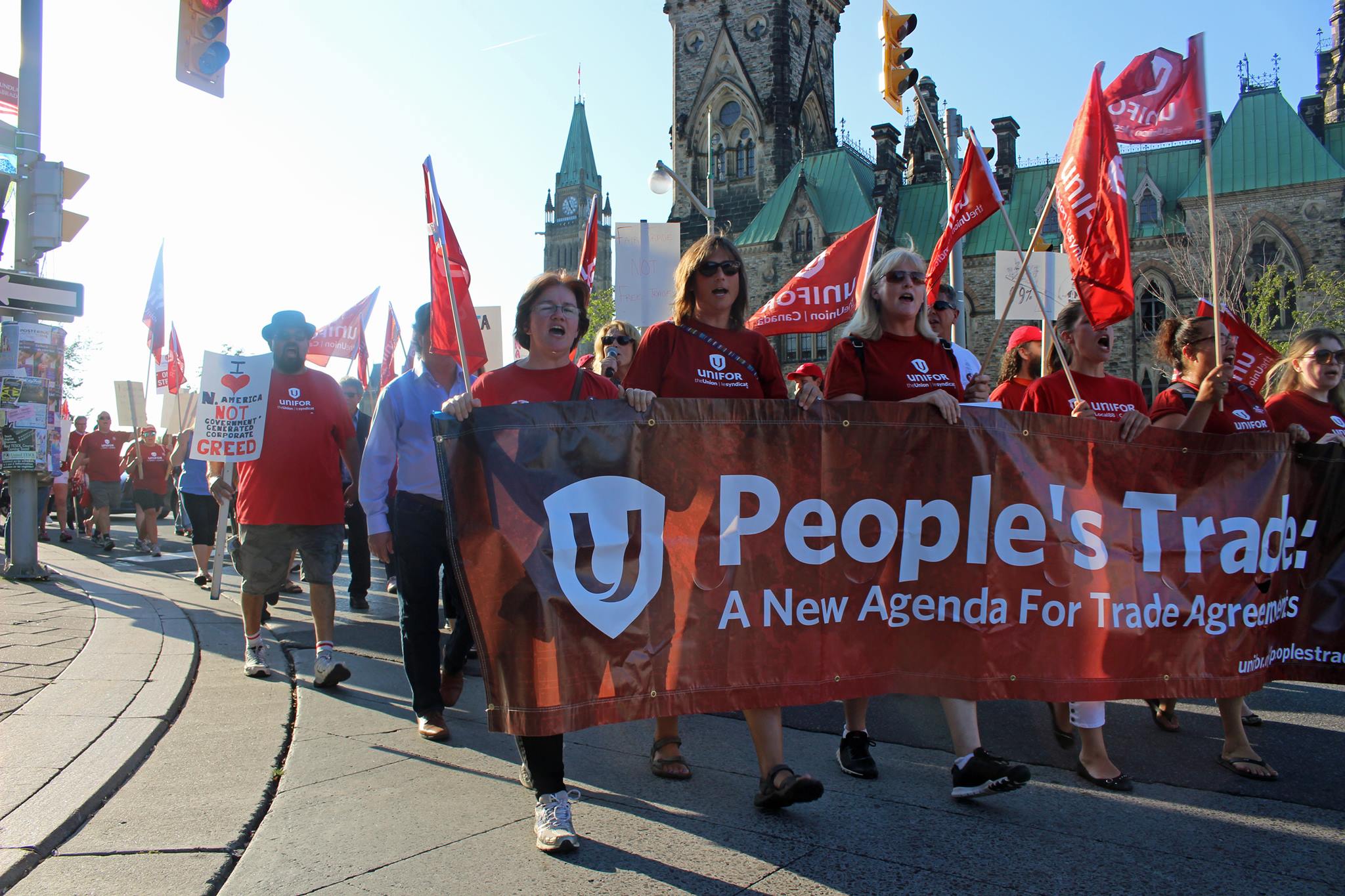 Ils réclamaient un Accord de libre-échange qui garantisse des conditions de travail dignes, le respect des droits des travailleurs et le droit au développement durable pour tous les pays concernés. Les organisateurs avaient espéré la présence de représentants des syndicats mexicains, mais le tremblement de terre d'une magnitude de 7,1 qui a dévasté le Mexique le 19 septembre ne l'a pas permis.