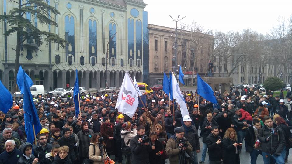 Environ 2 000 travailleurs venus de différentes régions de la Géorgie ont défilé le 23 février sur l’avenue centrale de Tbilissi munis de banderoles sur lesquelles on pouvait lire des slogans tels que « Je suis un travailleur qui n’est pas encore mort. Sécurisez le travail ». L’action de protestation contre la nouvelle loi « sur la sécurité au travail », devant entrer en vigueur le 1er janvier 2019, s’est poursuivie devant le bâtiment du Parlement.
