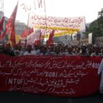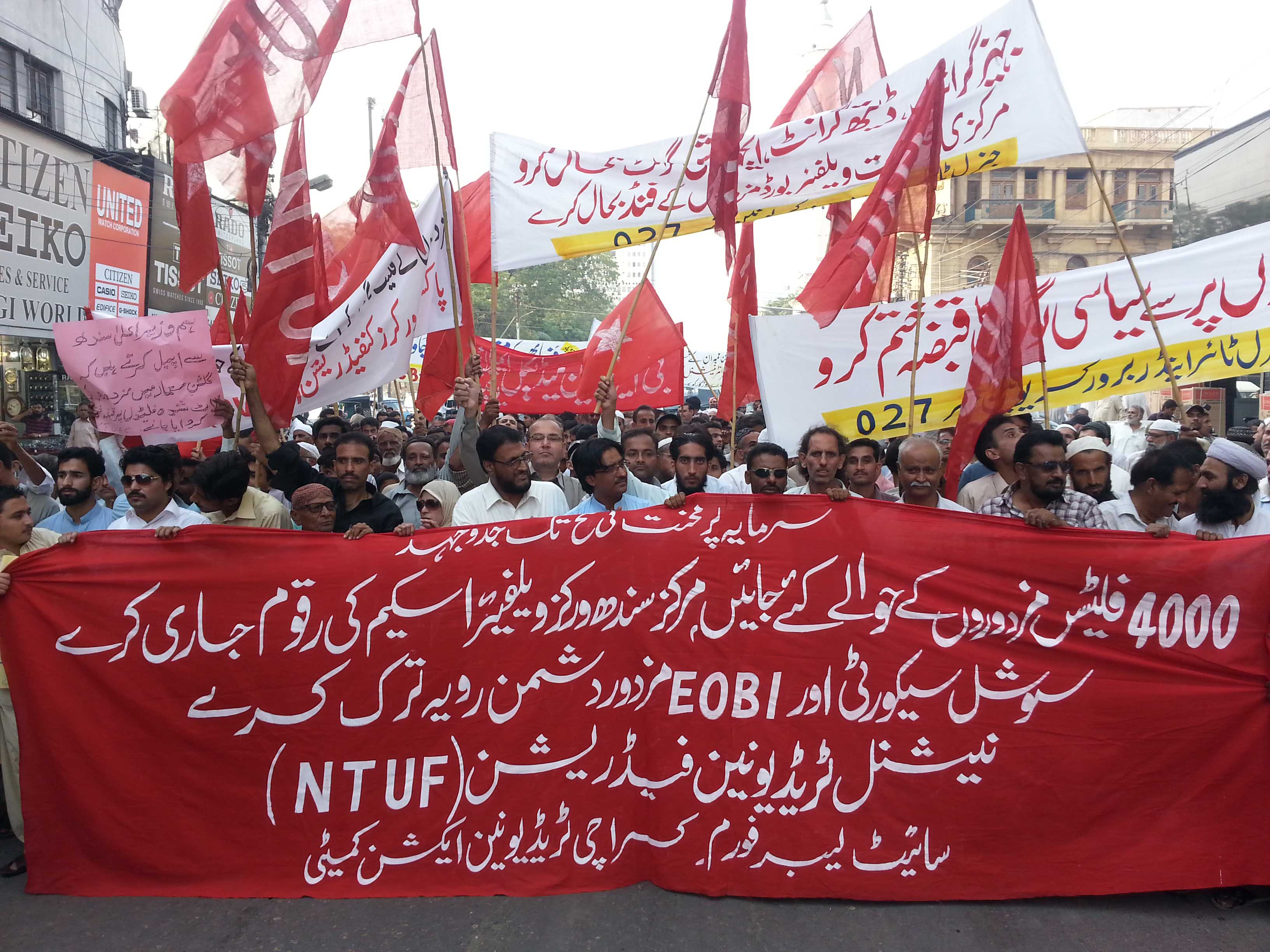 Dans une déclaration conjointe, les protestataires ont exigé l’enregistrement de tous les travailleurs et travailleuses aux régimes EOBI et SESSI, et d’agir de manière stricte contre les propriétaires des industries qui n’entreprennent aucune action dans ce domaine. Ils exigent également une hausse des retraites pour les aligner sur le niveau du salaire minimum.