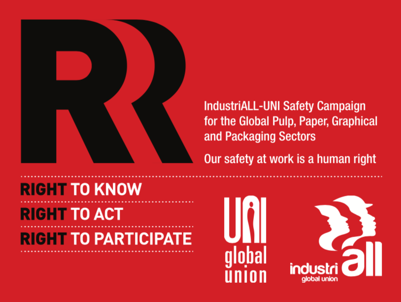 27 April, 2019Workers in the pulp, paper, graphical and packaging sectors, represented globally by IndustriALL Global Union and UNI, are using this 2019 Workers Memorial Day to kick off a yearlong campaign around the three fundamental worker rights needed to make work safe: