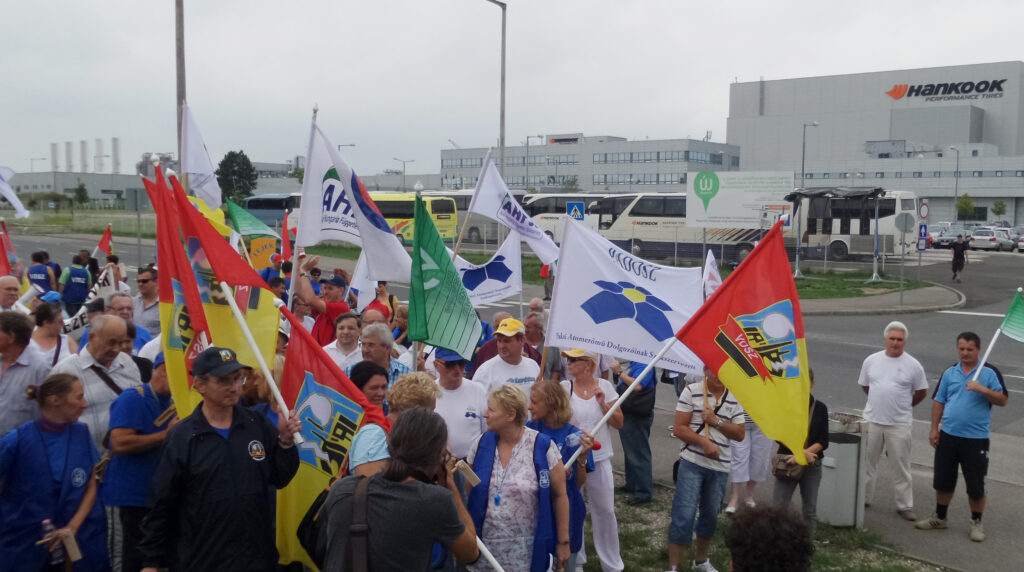On 4 August 400 activists representing over 60 Hungarian trade unions joined together in front of the company premises in a major protest against outrageous action engaged by Hankook.