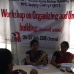 2 August, 2018IndustriALL South Asia Office organized consecutive workshops for auto sector workers on 28-29 July, and for garment workers on 26-27 July in Chennai, focusing on strengthening union power.