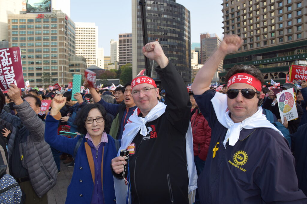 Sanches and other members of a global solidarity mission then marched through the streets with one million Koreans in the People’s Mass Mobilization organized by unions and broader civil society.