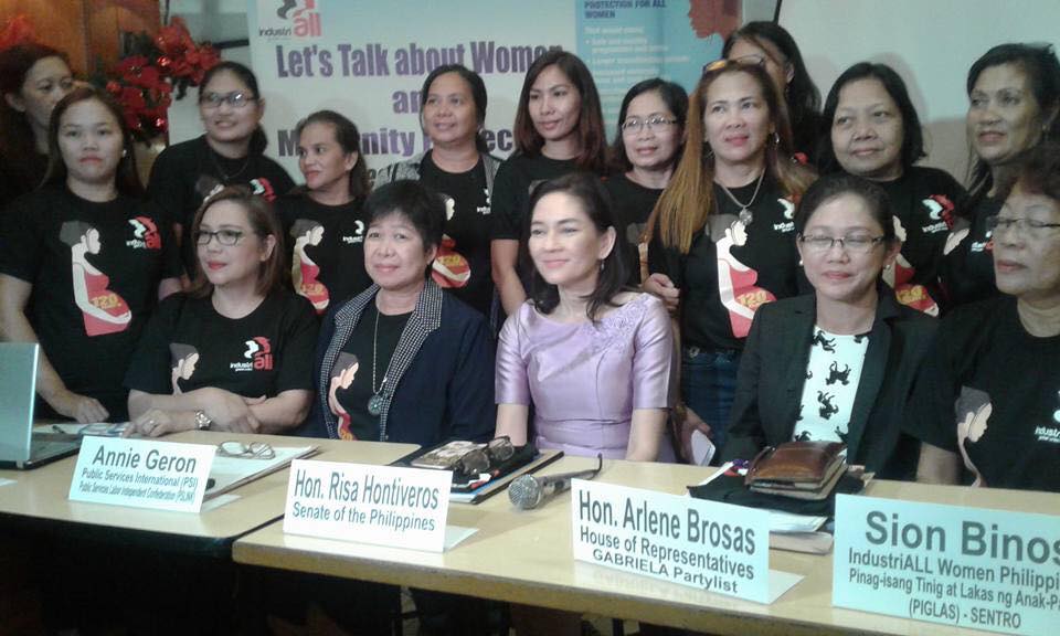 The women’s network of IndustriALL Global Union in the Philippines, together with Annie Geron of Public Services International (PSI), which represents public service workers, called on the country’s lawmakers to give women’s protection the same level of attention they give to business, investments, technological advancement and education. They also called on lawmakers to urgently pass Senate Bill 215 or the “Expanded Maternity Leave Act of 2016,” authored by Senator Risa Hontiveros of the social democratic Akbayan party.