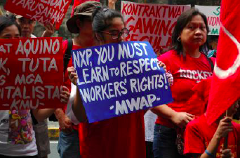 When MWAP workers attempted to negotiate a new collective bargaining agreement with NXP, the company responded by firing all 24 members of the union’s leadership under the pretext that their failure to work on a number of public holidays mounted to an illegal strike.
