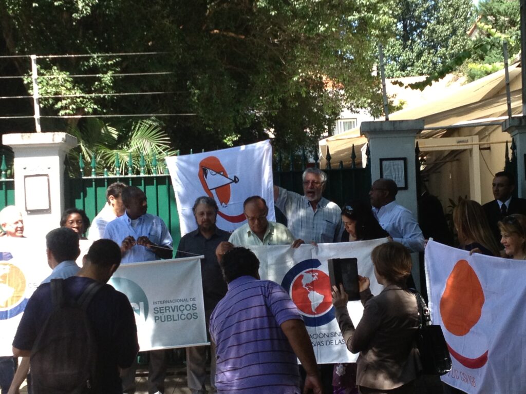 On 20 February, national and international trade unions demonstrated together at the Mexican Consulate in São Paulo.