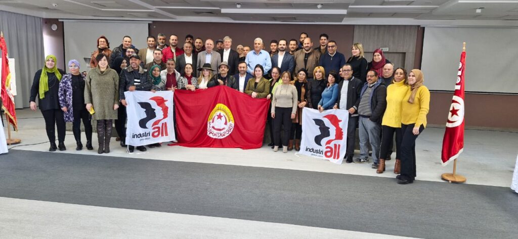 22 March, 2024Following the decision in last year’s regional conference, IndustriALL and affiliates from the Tunisian General Labor Union (UGTT) organized a meeting on Just Transition. More than 50 union leaders from the country’s textile, metals, oil and mining sectors participated in the meeting on 28 February.