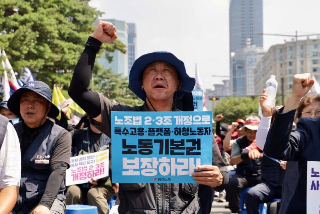 1 September, 2025Korean trade unions recognized the passage of the Trade Union and Labor Relations Adjustment Act (TULRAA) as a meaningful step in the right direction, while urging the government on 29 August to pursue deeper labour law reforms.