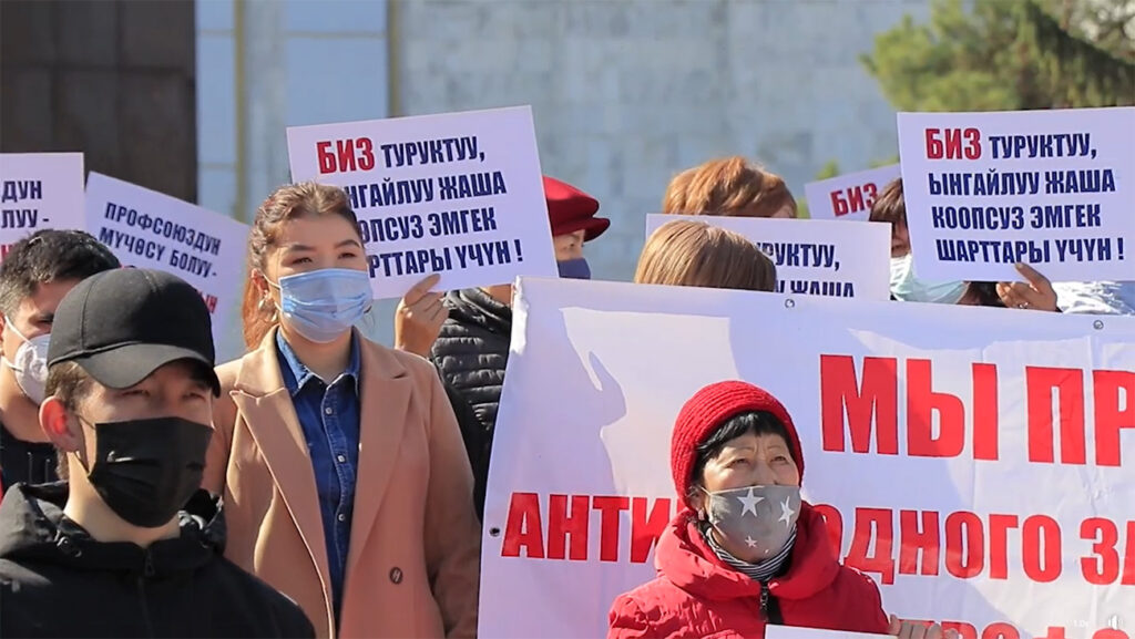 Parliament did not take into consideration the President’s numerous comments on the inconsistency of the vetoed law with the Constitution of the Kyrgyzstan and core international labour standards, and has included the same violating provisions in the new law. Parliament also ignored the demand to include representatives of other unions apart from the Federation of Trade Unions of Kyrgyzstan (FTUK) in the conciliation group to work on the revised version of the law.