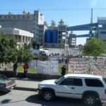 The aggressive group of around 100 workers were led by Alberto Martínez Sandoval and other members of the yellow union committee at the plant, assembling on the inner side of the perimeter fence with provocative banners. The aggressors then threw eggs, rocks and other projectiles at the demonstration outside.