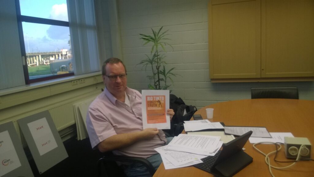 13 October, 2014Unions at the Rio Tinto aluminum production facility in the Netherlands participated in the global day of action by distributing the global day flyer to workers at the site.