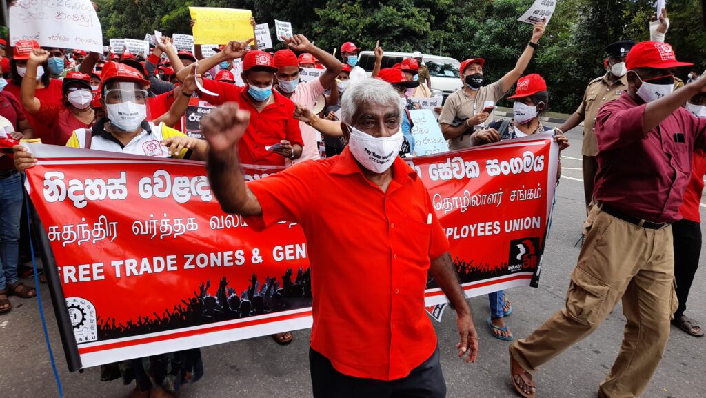Major lenders to Sri Lanka include Asian Development Bank, Japan, China and World Bank. Writing to the International Monetary Fund (IMF), global labour organisations and workers’ rights groups, Anton Marcus, joint secretary of IndustriALL affiliate Free Trade Zones and General Services Employees Union, said: