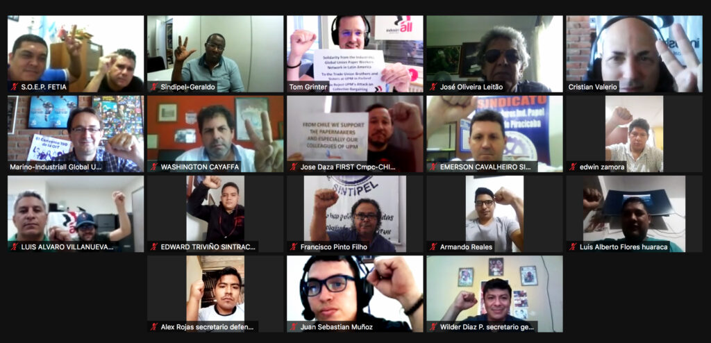 Union leaders from Argentina, Brazil, Chile, Colombia, Peru and Uruguay met with regional and global representatives from IndustriALL to discuss the situation of paper and pulp workers in the region and come up with a work plan and timetable for the sector in 2021.