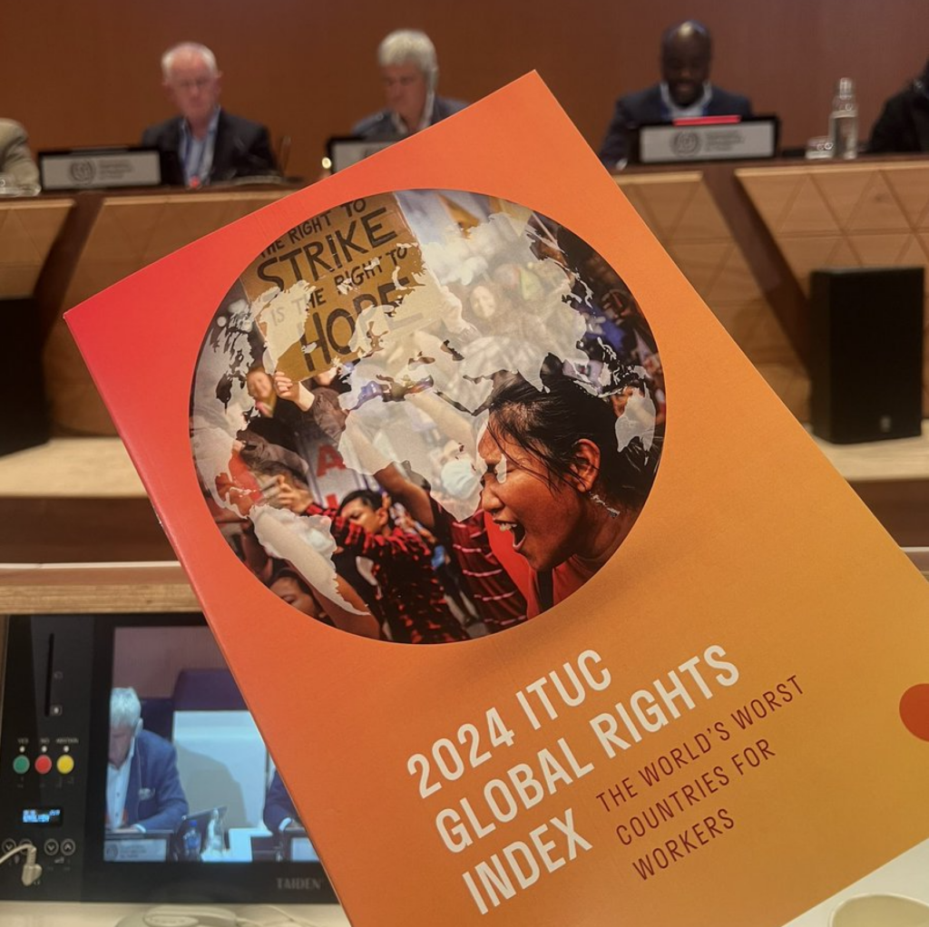 13 June, 2024The launch of ITUC’s 2024 global rights index makes for sad reading as workers’ rights are in decline around the world. Bangladesh, Belarus and Eswatini are among the ten worst countries in the world for working people.