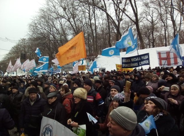 8 декабря свыше 10,000 членов профсоюзов из всех регионов Украины, представители трудовых коллективов всех отраслей экономики объединились под лозунгом «Профсоюзы требуют достойной жизни для людей».
