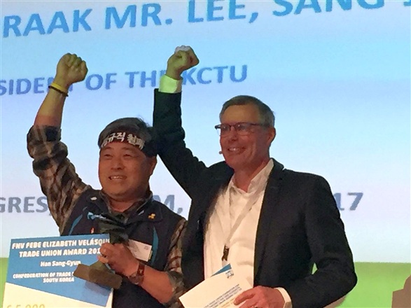 11 мая, 2017Президент Конфедерации профсоюзов Кореи (KCTU) Хан Сан Гюн награжден премией имени Фебе Веласкес за выдающиеся заслуги в области защиты прав профсоюзов. Вручение премии состоялось на съезде Конфедерации профсоюзов Нидерландов FNV.