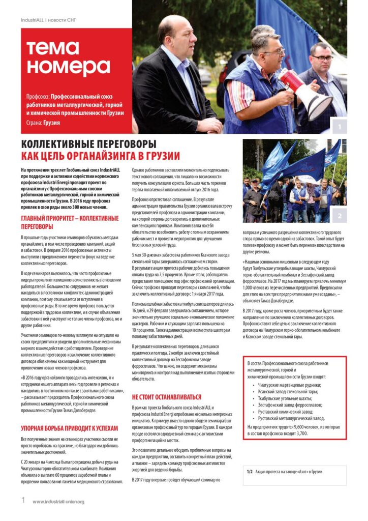 Большое внимание в статьях уделено органайзингу. Участники семинаров Профессионального союза работников металлургической, горной и химической промышленности Грузии по органайзингу решили перенести фокус с проведения кампаний, акций и забастовок на ведение коллективных переговорах.