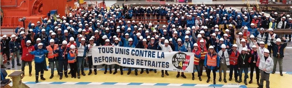 Совместная петиция профсоюзов на данный момент собрала более 600000 подписей. В совместном заявлении профсоюзов говорится, что они призывают правительство отказаться от повышения пенсионного возраста до 64 лет и увеличения периода уплаты взносов. Профсоюзы требуют, чтобы были рассмотрены другие решения, которые просто отвергаются. Членские организации IndustriALL, входящие в CFDT, CGT, FO, CFE-CGC, CFTC, поддержали это совместное заявление.