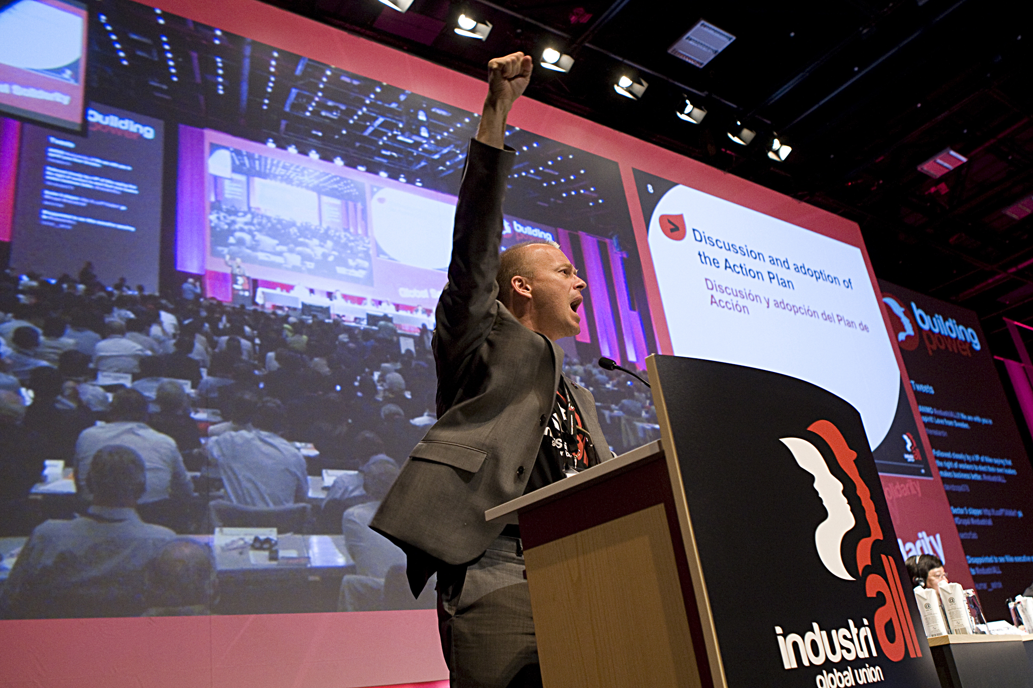 Юрки Райна представил План действий из десяти пунктов, призванный обеспечить поддержку Глобальным профсоюзом IndustriALL своих членских организаций, особенно тех из них, которые находятся в авангарде борьбы за права человека и трудовые права.