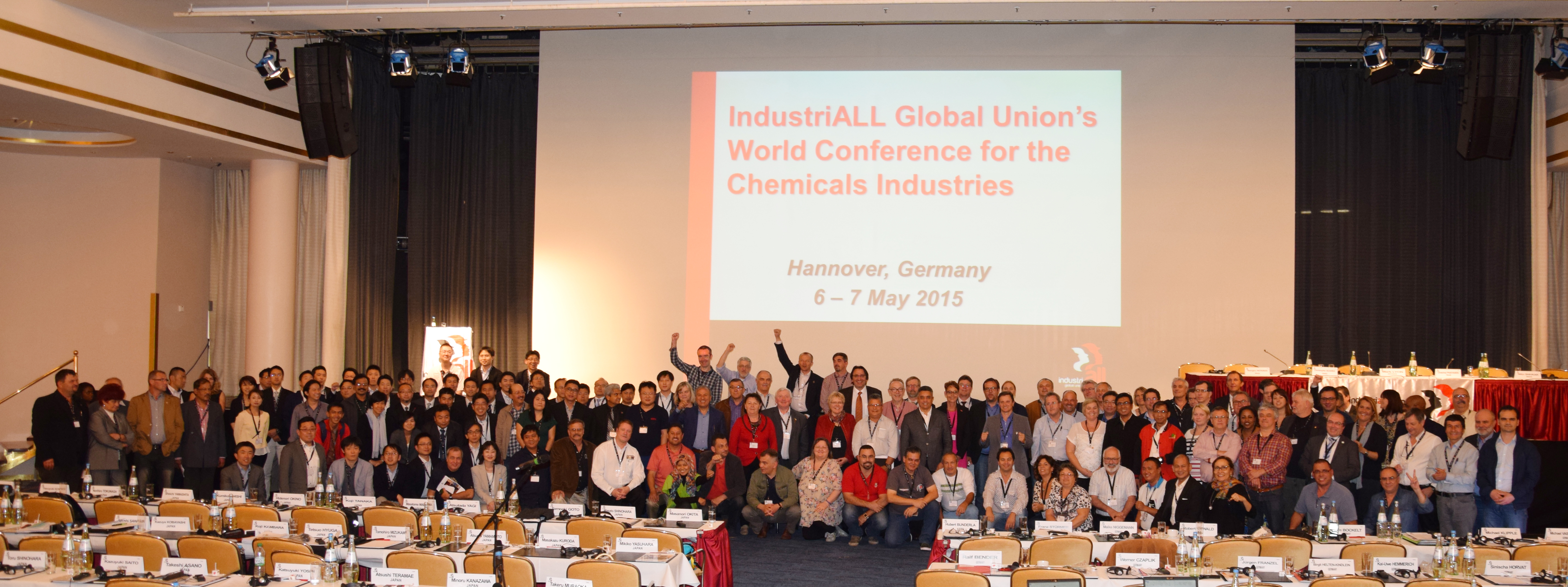 12 мая, 2015Около 200 делегатов из 40 стран глобального Юга и глобального Севера, представляющих работников химической промышленности, 6-7 мая собрались в Ганновере, Германия, на Всемирную конференцию Глобального Союза IndustriALL, посвященную вопросам химической промышленности, чтобы обсудить проблемы и определить ответные действия.