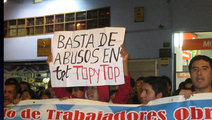 В апреле во время переговоров по подписанию нового коллективного соглашения Topy Top уволила секретаря профсоюза SINTOTTSA Убера Амеда Альбухара. SINTOTTSA входит в состав Национальной федерации текстильщиков Перу (FNTTP), членской организации IndustriALL.