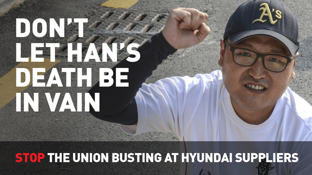 Потребуйте #JusticeForHan (справедливости в память о Хане) и, пожалуйста, подпишите петицию LabourStart, призывающую Hyundai прекратить уничтожение профсоюзов на предприятиях её поставщиков.