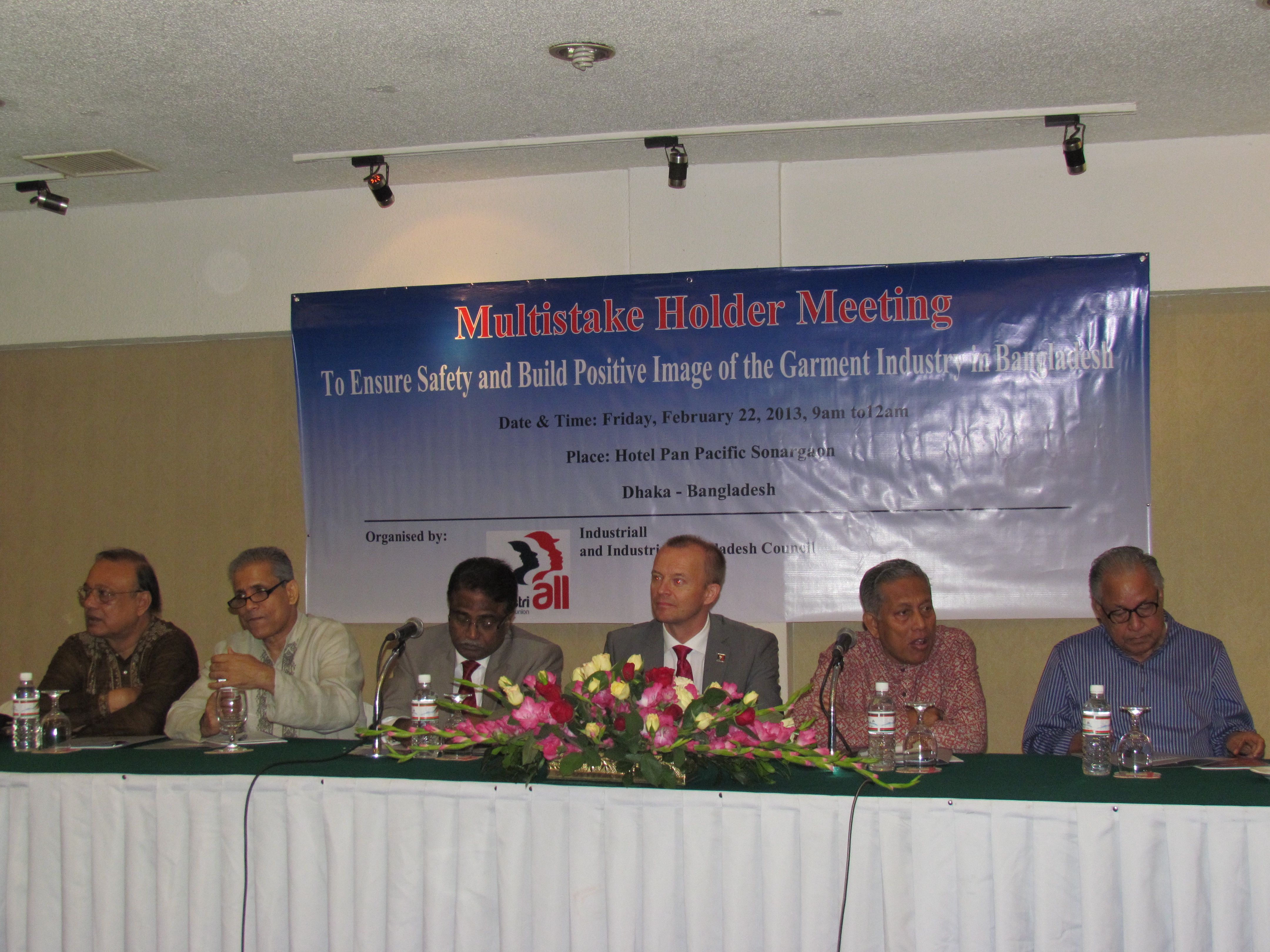 В совещании, состоявшемся 22 февраля 2013 года, приняли участие представители всех основных сторон, имеющих отношение к производству готовой одежды в Бангладеш, в том числе, министр промышленности и секретарь по трудовым вопросам, представители крупных брендов и заказчиков, таких как H&M, PVH и Tchibo, профсоюзов, представляющих интересы работников швейной промышленности, объединения работодателей “Ассоциация производителей одежды и экспортеров Бангладеш” (BGMEA), Международной организации труда (МОТ), а также национальных и международных неправительственных организаций и партнерских профсоюзов.