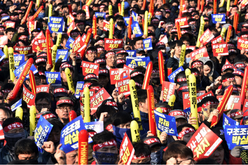 17 февраля, 201715 февраля около 4000 рабочих-металлистов провели акцию протеста около судостроительной верфи Hyundai Heavy Industries (HHI) в городе Ульсан в Южной Корее, пообещав не допустить реструктуризации крупнейшей в мире судостроительной компании.