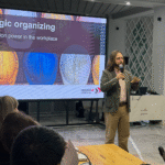 The first day of training covered organizing strategy, starting with the need to do research on target companies. This was followed by discussions on holding one to one conversations with workers, recruiting organic leaders, and building an organizing committee in the workplace.