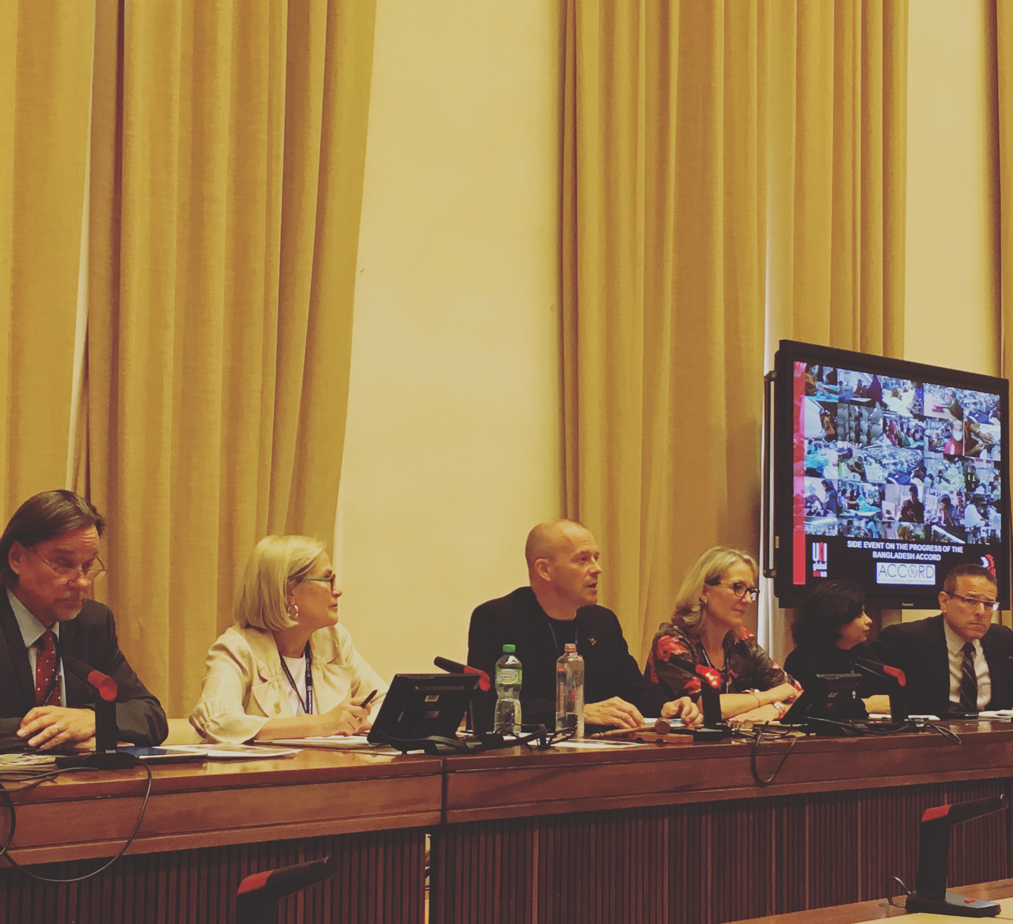 2 июня, 2016Спустя три года после появления Соглашения о пожарной безопасности и строительных нормах в Бангладеш на мероприятии в Женеве, организованном 2 июня вне повестки дня Международной конференции труда, состоялось обсуждение нынешнего состояния выполнения договора и проблем в будущем. По словам представителей обеих сторон, как трудящихся, так и брендов, несмотря на некоторые недопустимые задержки в устранении нарушений, благодаря Соглашению был достигнут значительный прогресс.