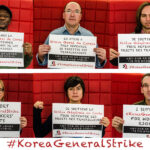 - Сделайте селфи, держа в руках табличку со словами солидарности (образец можно найти по ссылке справа), и разместите его в Интернете с хэштегом #KoreaGeneralStrike. Отправьте фото нам по адресу [email protected], чтобы мы могли расшарить его.