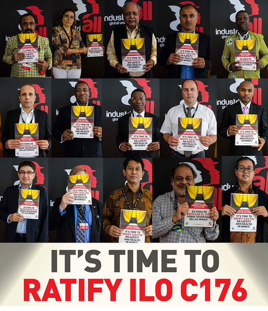 Особое внимание было уделено кампании по ратификации Конвенции МОТ № 176 о безопасности и гигиене труда на шахтах. Стив Хант из Профсоюза работников Северной Америки напомнил, что он входил в состав рабочей группы, разработавшей Конвенцию № 176 в 1995 году: “Я шокирован сегодняшней ситуацией. Только 31 страна ратифицировала её, а шахтеры по-прежнему гибнут”.