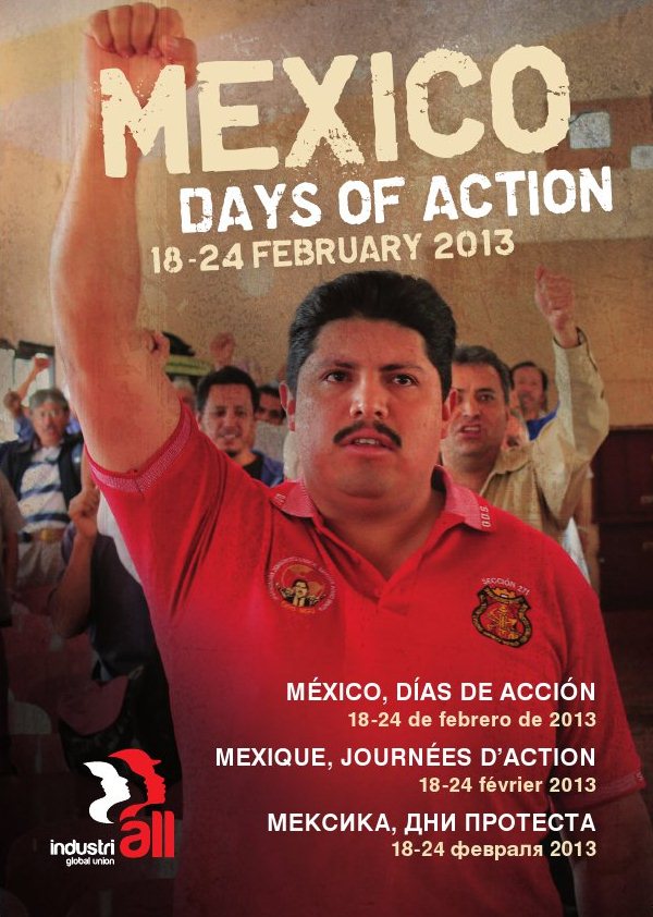 Во время Дней протеста членские профсоюзные организации IndustriALL вместе с работниками транспорта и другими трудящимися посетят посольства Мексики в своих странах, чтобы убедить послов принять меры в отношении: