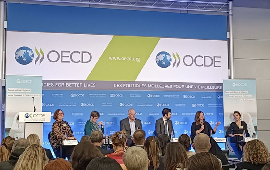 2 марта, 2023Форум ОЭСР, посвящённый теме должной осмотрительности в швейной и обувной промышленности, собрал в феврале в Париже, Франция, представителей правительств, бизнеса, профсоюзов, гражданского общества и академических кругов, чтобы обсудить ответственность, которую несут компании за выявление, предотвращение, минимизацию последствий и предоставление отчётов о негативном воздействии на права человека.