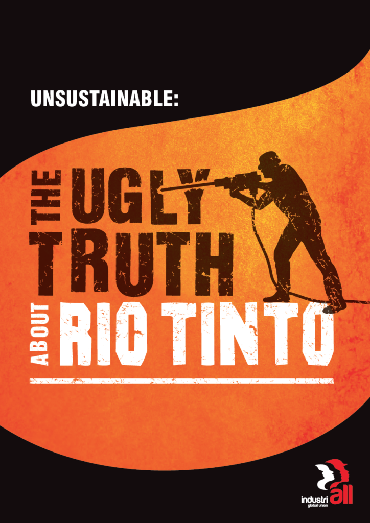 Глобальный Союз IndustriALL подготовил доклад “Неустойчивая компания: Голая правда о Rio Tinto”, который будет представлен сегодня, 15 апреля, в первой половине дня. В документе раскрываются методы работы транснациональной компании, применяемые ею во всем мире. IndustriALL призывает Rio Tinto жить в соответствие со своим заявлением о том, что она – устойчивая компания, в том числе путем уважения прав трудящихся.
