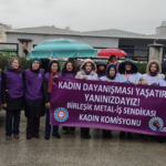 “Мы, трудящиеся женщины, боремся не только против работодателя, но и против патриархата. Вы создали профсоюз, чтобы улучшить свои условия труда, чтобы громко заявить о несогласии с очень продолжительным рабочим временем, дискриминацией, преследованиями и издевательствами. В ответ работодатель вас уволил. Мы верим, что можем изменить нашу жизнь и мир благодаря женской солидарности. Мы будем с вами в этой борьбе до победы”,
