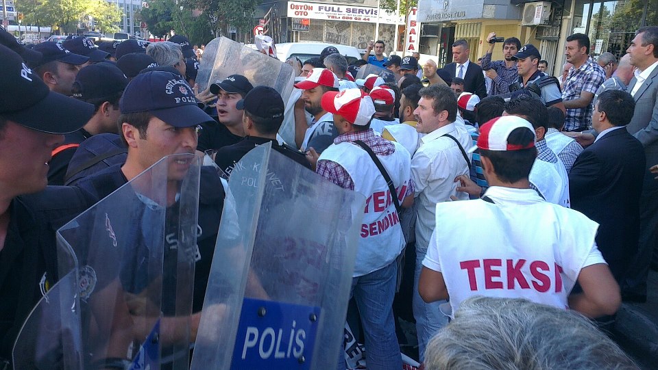 Утром 24 сентября 12 автобусов с сотрудниками спецназа поджидали рабочих, приехавших, чтобы продолжить акцию протеста. Хорошо вооруженные полицейские заставили рабочих покинуть место пикета и окружили их в квартале от фабрики. Поддержать рабочих пришли два члена парламента и другие рабочие, они находились среди демонстрантов. Несмотря на это, полиция применила силу. Стремясь остановить приближавшуюся к фабрике группу, полицейские стали избивать демонстрантов. Один рабочий госпитализирован. Смотрите видео здесь и здесь.
