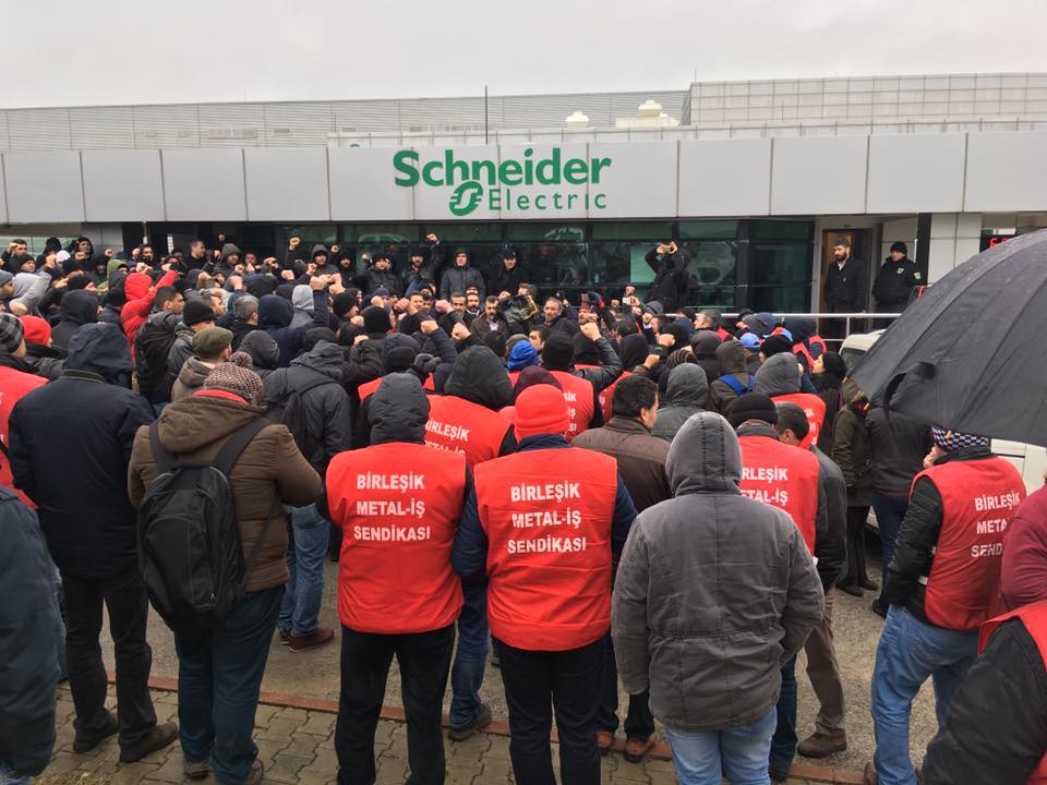 В пятницу, 20 января, около 2200 рабочих трех компаний и 13 заводов начали забастовку в разных уголках Турции. Это произошло после того, как коллективные переговоры между профсоюзом и крупными транснациональными компаниями по производству электрооборудования, Schneider, General Electric и ABB, были сорваны.